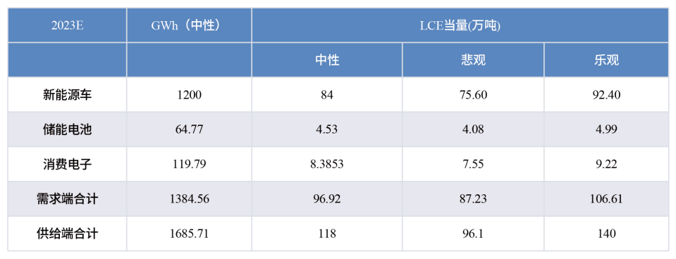 碳酸锂短期供需测算(1GWh=0.07万吨LCE(Lithium Carbonate Equivalent))(图来源:EESA储能领跑者联盟《2023中国新型储能行业发展白皮书》)