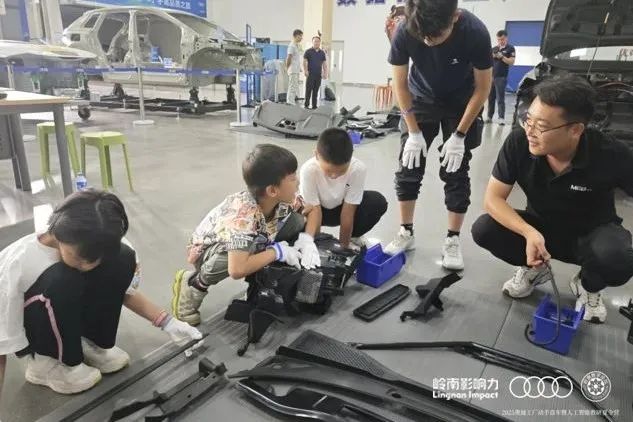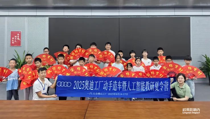 2025年8月17日,由岭南影响力、中山大学多家校友会、岭南数字论坛、广东省人工智能通识虚拟教研室等单位联合一汽-大众汽车有限公司佛山分公司共同发起的“2025奥迪工厂动手造车暨人工智能教研夏令营”在佛山圆满落幕。本次夏令营吸引了来自全国多地的20名中山大学校友子女(9-17岁中小学生)参与,是国内首个融合人工智能理论与汽车制造实践的双轨制教研项目。