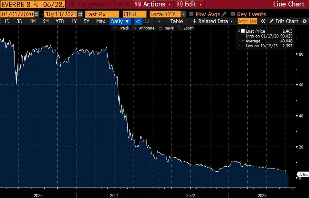 The Evergrande 8.75% USD bond maturing on 6/28/2025 was trading at low 80s (yielding almost 13.75%) in mid-2020. I have well-intentioned colleagues advising me to invest in this bond for retirement. Incidentally, the bond price was last quoted at 2.46.